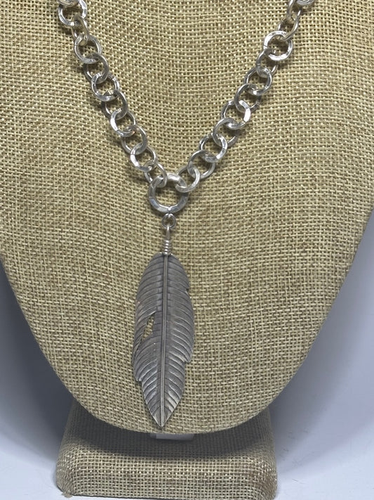SILVER CIRCLE CHAIN NECKLACE WITH STERLING SILVER FEATHER PENDANT LCN758