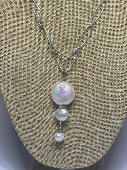 FRESHWATER PEARL DROP NECKLACE WITH STERLING SILVER CHAIN LCN760