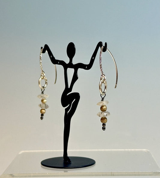 TERMILATED QUARTZ AND PYRITE DROP EARRINGS LCE690
