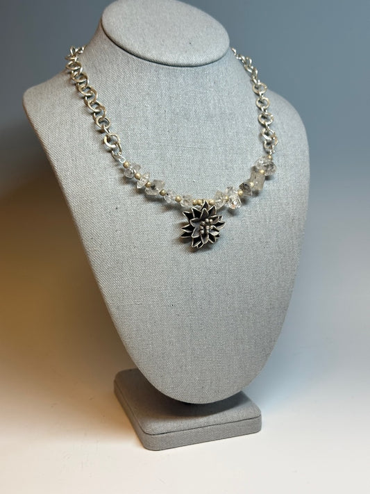 STERLING SILVER BLOOM PENDANT WITH HERKIMER ROUGH CUT DIAMOND NECKLACE LCN688