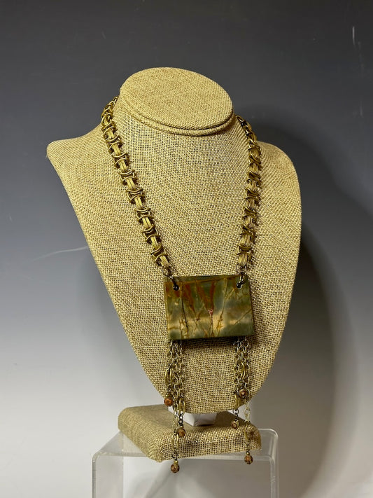 LANDSCAPE JASPER AND BRASS STATEMENT NECKLACE LCN700