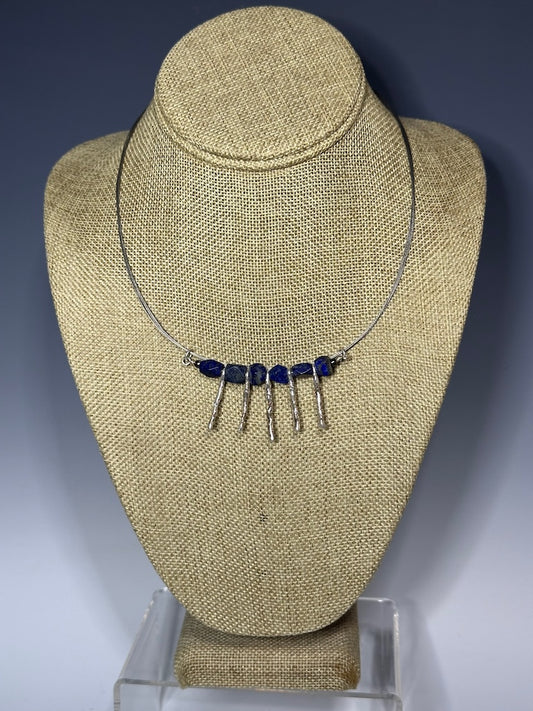 AFGHAN LAPIS AND STERLING SILVER NECKWIRE NECKLACE LCN702