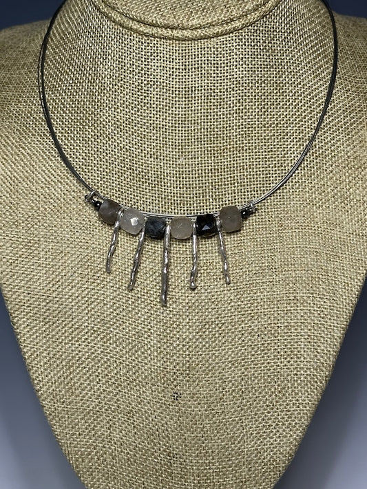 TERMILATED QUARTZ AND STERLING SILVER NECKWIRE NECKLACE LCN705