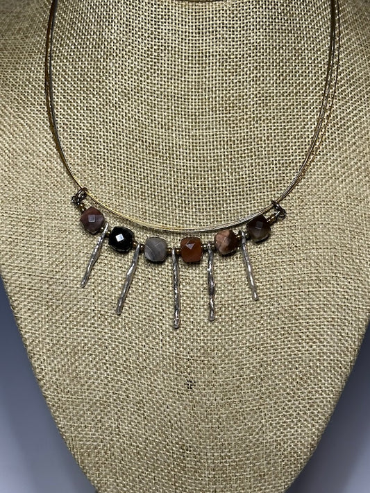 PETRIFIED WOOD AND STERLING SILVER NECKWIRE NECKLACE LCN706