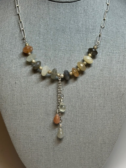 MOONSTONE AND STERLING SILVER STATEMENT NECKLACE LCN707