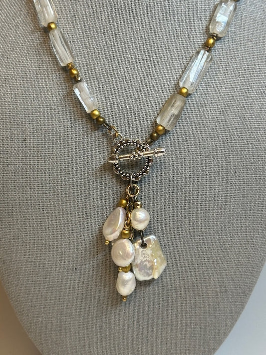 CRYSTAL AND FRESH WATER PEARL FRONT TOGGLE NECKLACE LCN670