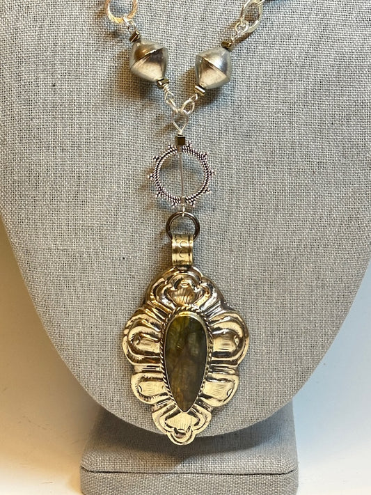 LABRADORITE FOCAL PENDANT NECKLACE WITH SILVER AND FACETED LABRADORITE LCN671