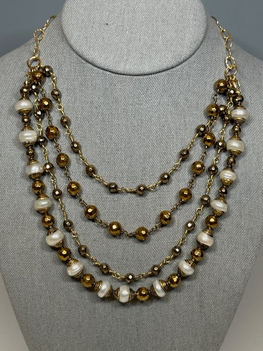 PYRITE AND THAI PEARL STATEMENT NECKLACE LCN635
