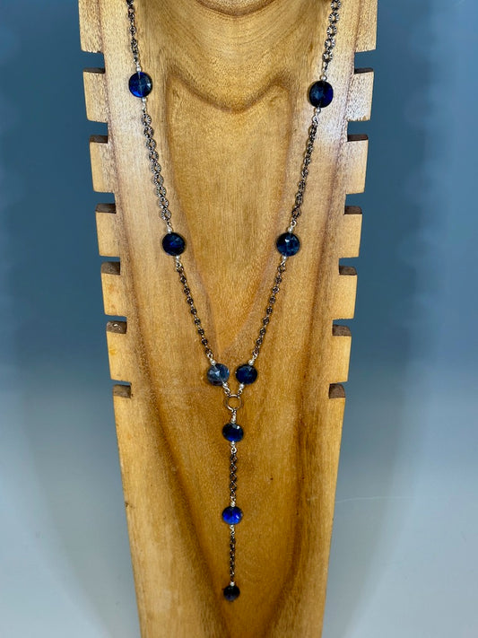 LABRADORITE AND HEMATITE CHAIN LONG STATEMENT NECKLACE LCN636