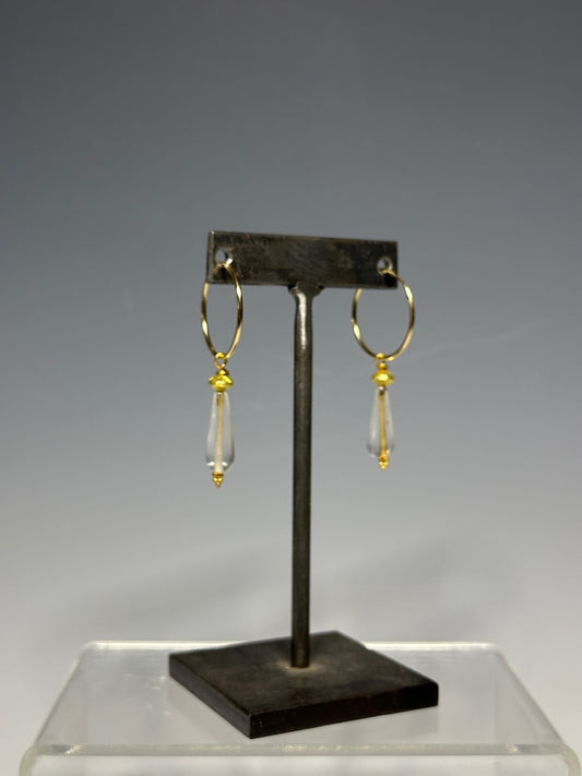 AMBER QUARTZ AND GOLD PLATED STERLING SILVER HOOP EARRINGS LCE544