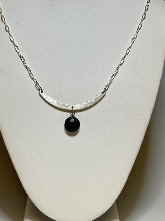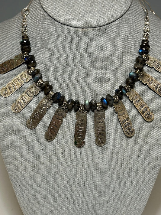 VINTAGE SILVER AND FACETED LABRADORITE STATEMENT NECKLACE LCN560