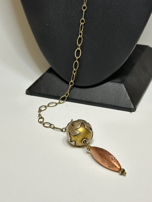 BRASS, HEMATITE AND COPPER LARIET NECKLACE LCN536