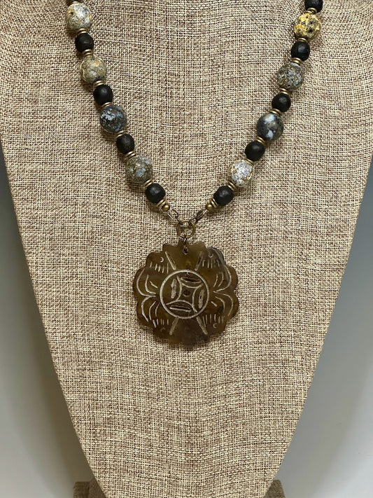 VINTAGE CARVED JADE FOCAL PENDANT NECKLACE WITH RARE OCEAN JASPER LCN541