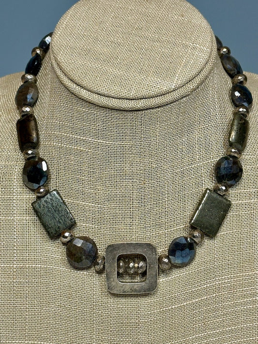 PYRITE AND SILVER STATEMENT NECKLACE LCN550