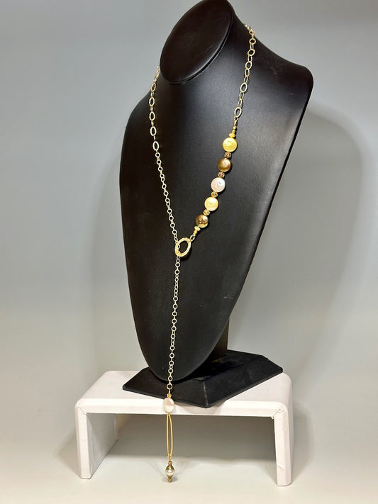GOLD/FRESHWATER PEARL LARIAT NECKLACE LCN556