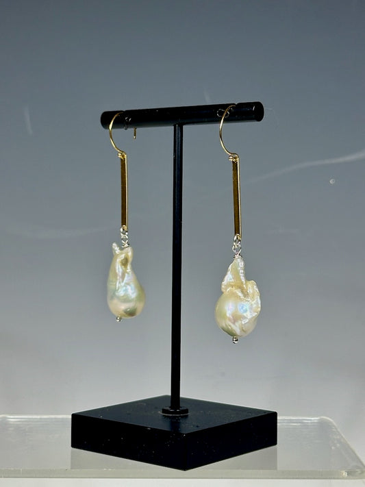 GOLD FILLED STERLING SILVER DROP EARRINGS WITH LARGE FRESHWATER PEARLS LCE1062