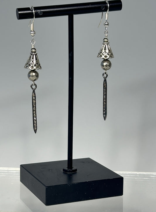 STERLING SILVER DIAMOND DROP EARRINGS WITH PYRITE AND STERLING SILVER CAP LCE1071