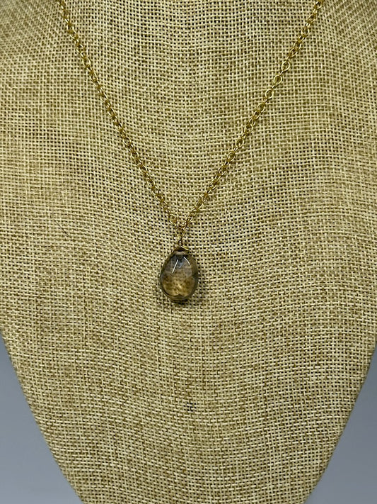 SMOKEY TOPAZ TEARDROP PENDANT NECKLACE WITH GOLD FILLED STERLING SILVER CHAIN LCN1066