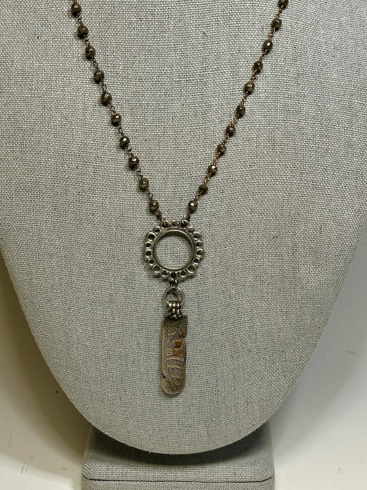 PYRITE AND OXIDIZED SILVER PENDANT NECKLACE LCN923