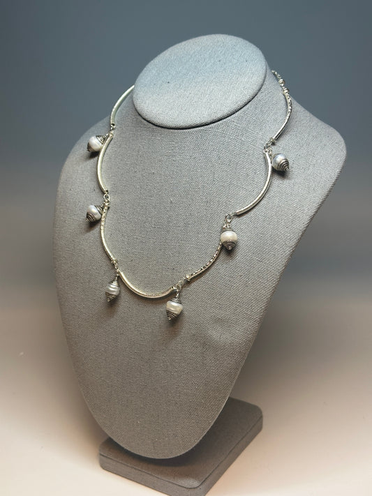 SILVER STATEMENT NECKLACE WITH PEARLS LCN905