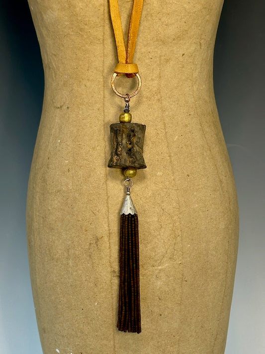 TORCHED COPPER CHAIN AND LEATHER NECKLACE WITH MIXED MEDIA PENDANT LCN915