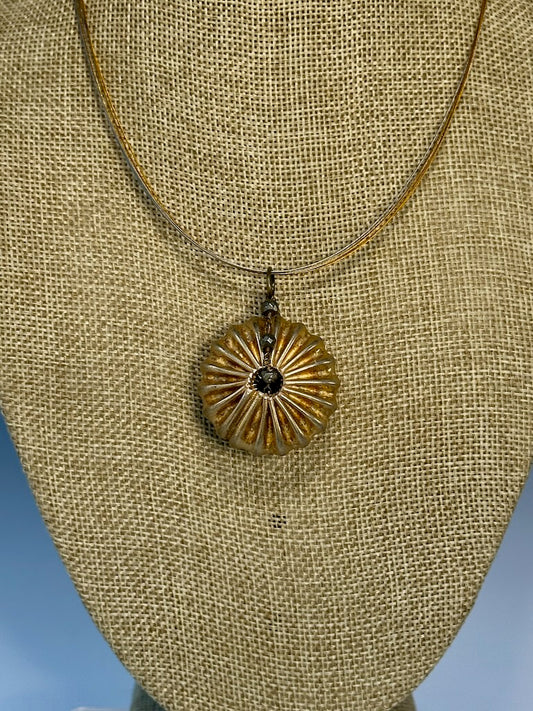 BRASS FOCAL BEAD PENDANT NECKLACE WITH PYRITE LCN917