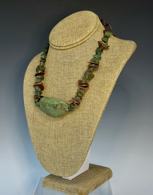 ROUGH CUT NATURAL TURQUOISE STATEMENT NECKLACE WITH TORCHED COPPER LCN922