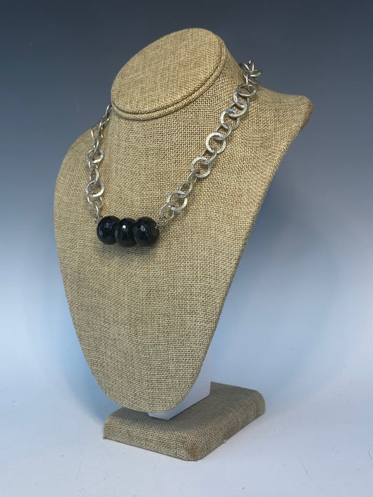 SILVER OPEN DISC CHAIN WITH ONYX NECKLACE LCN882