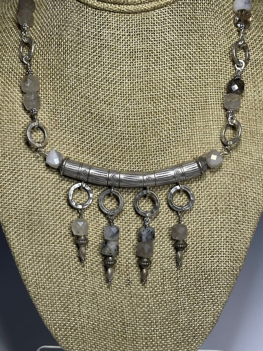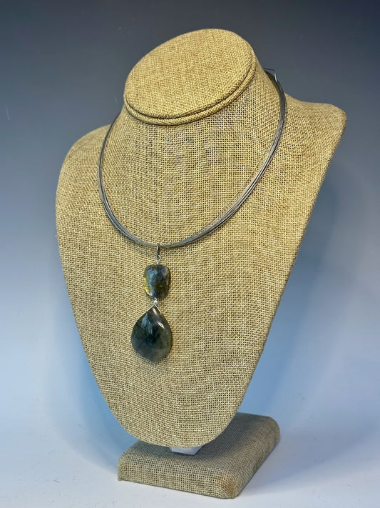 LABRADORITE AND STAINLESS STEEL NECK WIRE NECKLACE LCN890