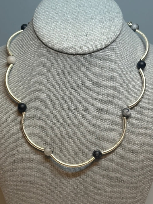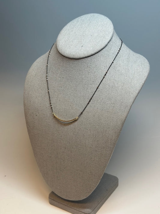 SIMPLE OXIDIZED STERLING SILVER AND SILVER GOLD PLATE NECKLACE LCN775