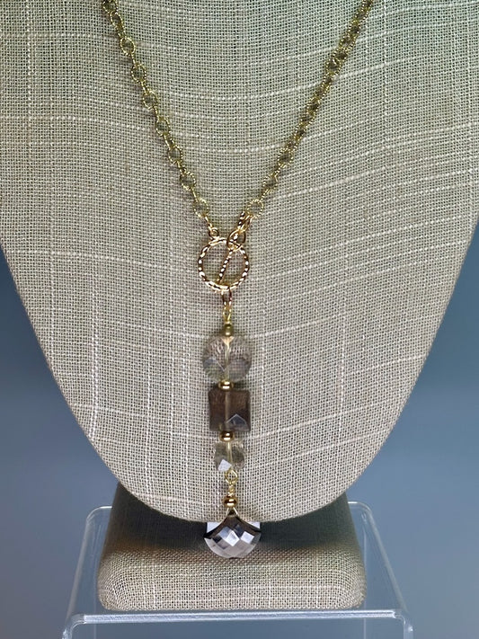 SMOKY TOPAZ AND BRASS FRONT TOGGLE NECKLACE LCN768