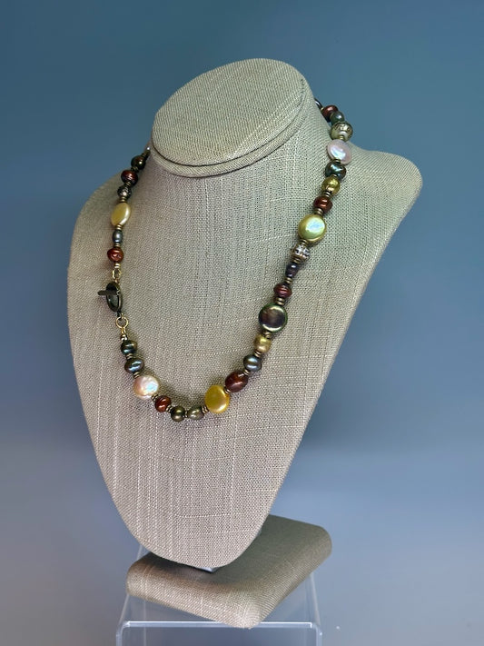 MIXED FRESH WATER PEARL NECKLACE WITH BRASS TOGGLE LCN770