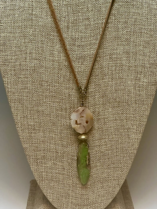 CHRYSOCOLLA AND BRASS PENDANT ON DEER SUEDE LEATHER LCN778