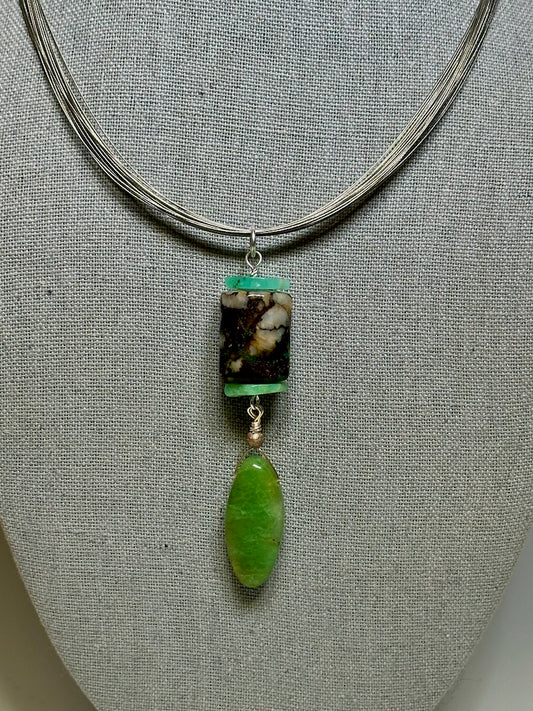 CHRYSOCOLLA STATEMENT PENDANT ON MULTI STRAND STAINLESS STEEL NECK WIRE LCN988