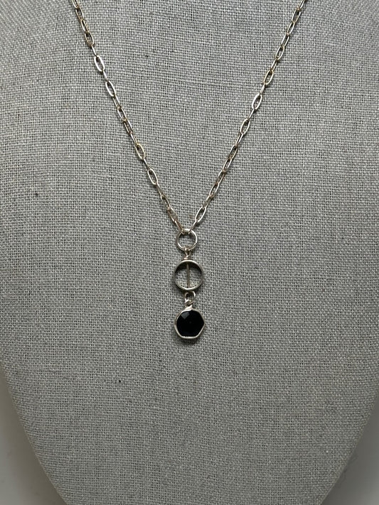 STERLING SILVER CHAIN NECKLACE WITH FACETED ONYX PENDANT LCN972