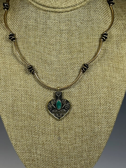 GOLD FILLED STERLING SILVER NECKLACE WITH VINTAGE CHRYSOCOLLA PENDANT LCN978