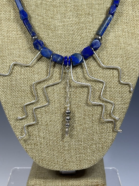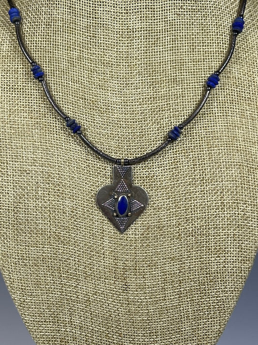 LAPIS AND HIGH HILL TRIBE STERLING SILVER STATEMENT NECKLACE LCN980