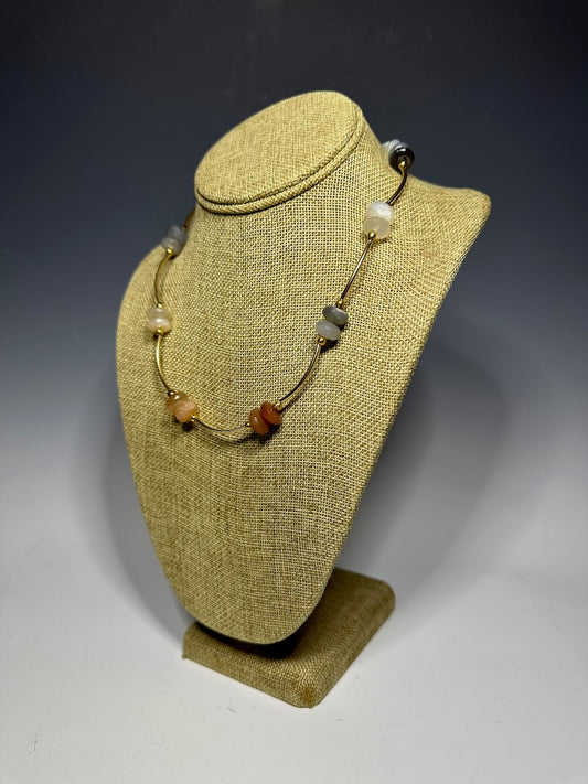 PICASSO MARBLE NECKLACE WITH AFGHAN BRASS AND STERLING SILVER PENDANT LCN658