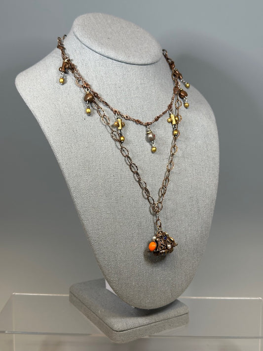 VINTAGE CHARM DOUBLE STRAND STATEMENT NECKLACE LCN619