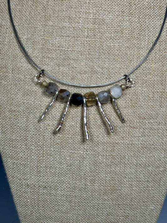 TERMILATED QUARTZ AND HIGH HILL AFRICAN SILVER NECK WIRE NECKLACE