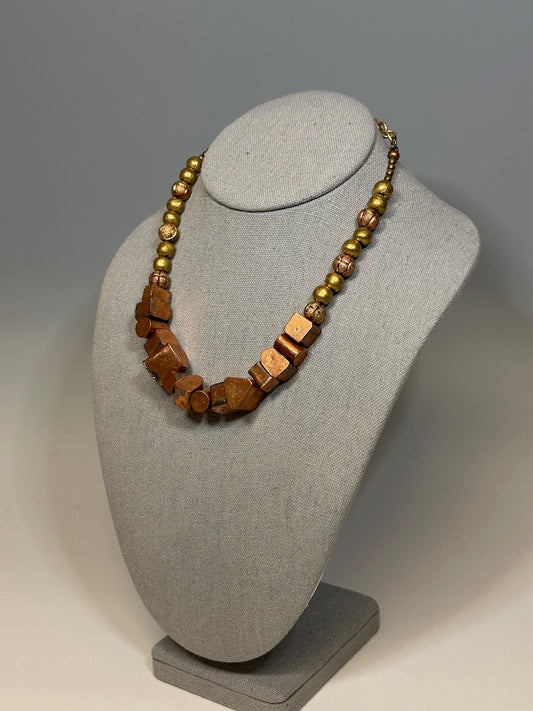 HIGH HILL AFRICAN COPPER WITH TORCHED COPPER AND BRASS STATEMENT NECKLACE LCN633