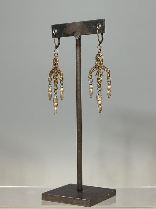 ANTIQUE BRASS AND SILVER CHANDELEIR EARRINGS LCE624