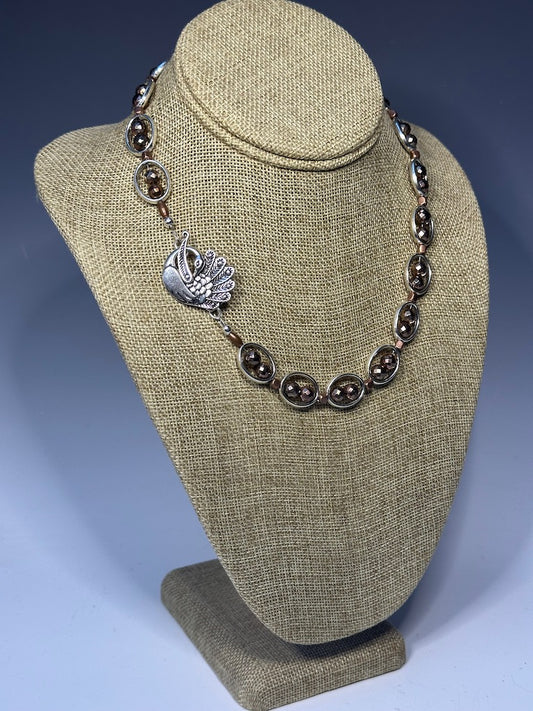SILVER AND COPPER PYRITE STATEMENT NECKLACE WITH TOGGLE LCN584