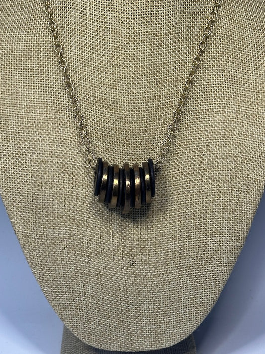 VINTAGE BLACK WOOD AND BRASS NECKLACE LCN585