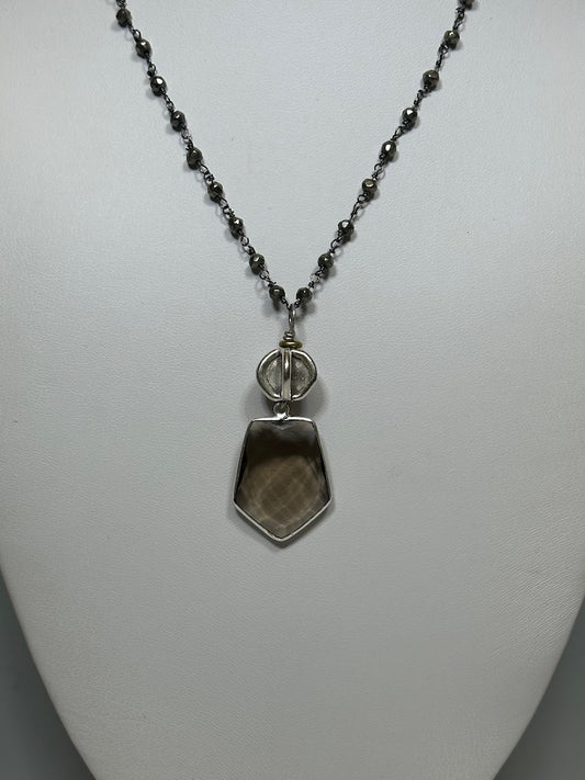 SMOKY QUARTZ AND PYRITE CHAIN NECKLACE LCN592