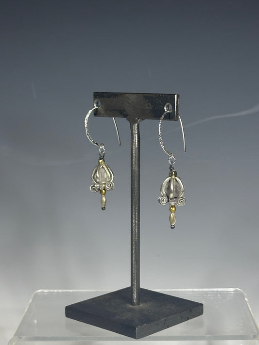 STERLING SILVER HOOP WITH BRASS DISC DROP EARRINGS LCE1018
