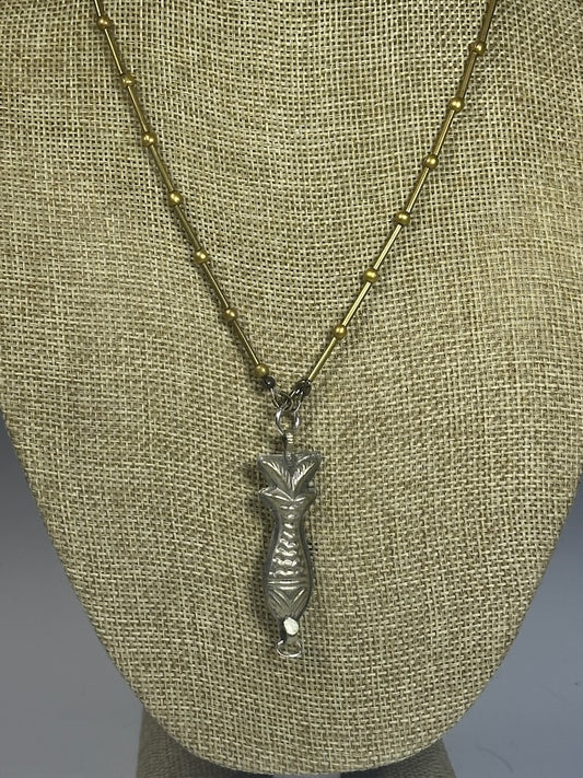 HANDMADE BRASS CHAIN WITH VINTAGE SILVER FISH NECKLACE LCN1016