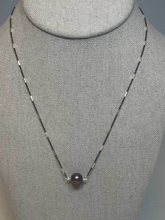 PURPLE PEARL SOLATAIRE AND OXIDIZED STERLING SILVER CHAIN NECKLACE LCN1022