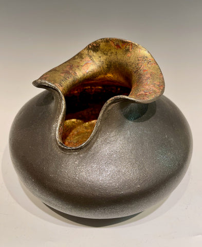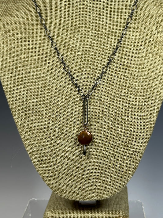 COPPER FRESHWATER PEARL DISC WITH OXIDIZED STERLING SILVER AND PAPERCLIP NECKLACE LCN1027