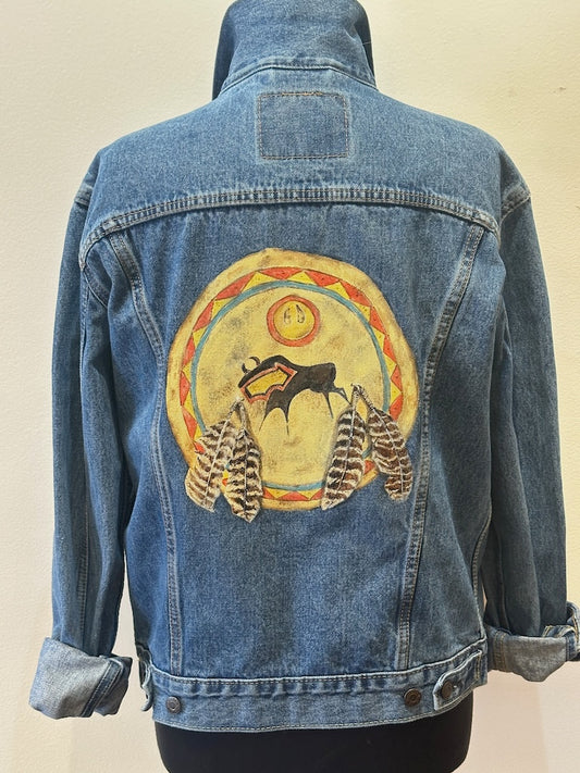 "LAKOTA DANCE SHIELD" HAND PAINTED JEAN JACKET FM18